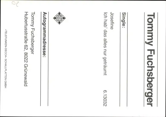 Ak Sänger Thomas Tommy Fuchsberger, Portrait, Autogramm