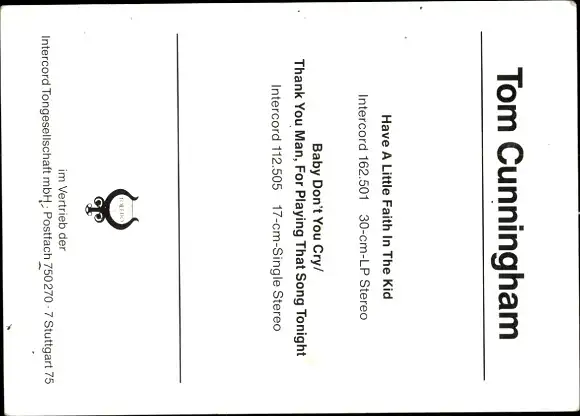 Ak Sänger Tom Cunningham, Portrait, Autogramm