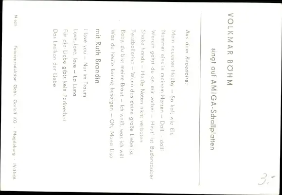 Ak Sänger Volkmar Böhm, Portrait, Amiga Schallplatten, Autogramm
