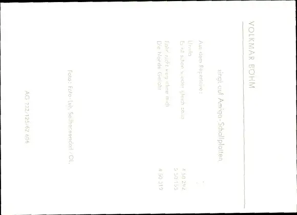 Ak Sänger Volkmar Böhm, Portrait, Amiga, Ursula, Autogramm