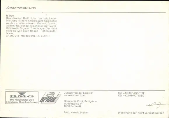 Ak Sänger und Moderator Jürgen von der Lippe, Portrait, Autogramm