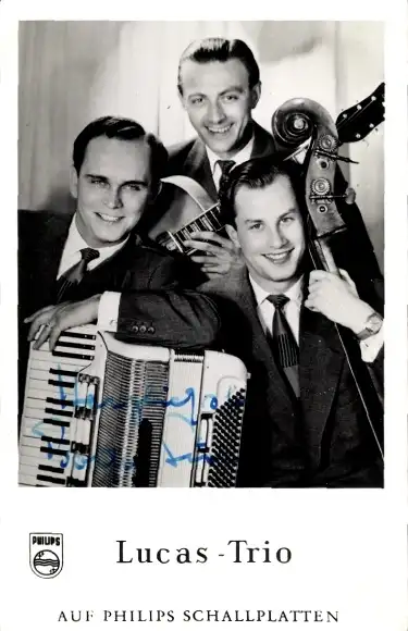 Ak Sänger und Musiker Lucas-Trio, Portrait mit Instrumenten, Autogramm