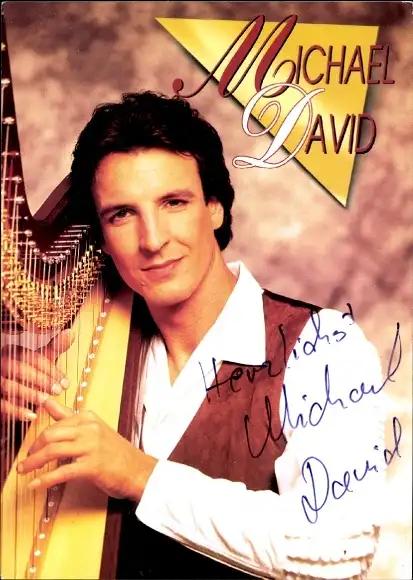 Ak Sänger und Musiker Michael David, Portrait mit Musikinstrument, Autogramm