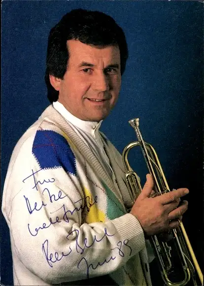 Ak Sänger und Musiker Peter Beil, Portrait mit Trompete, Autogramm