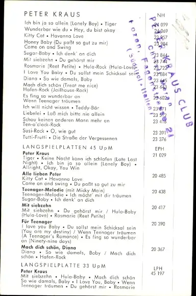 Ak Sänger und Schauspieler Peter Kraus, Portrait, Gitarre, Autogramm