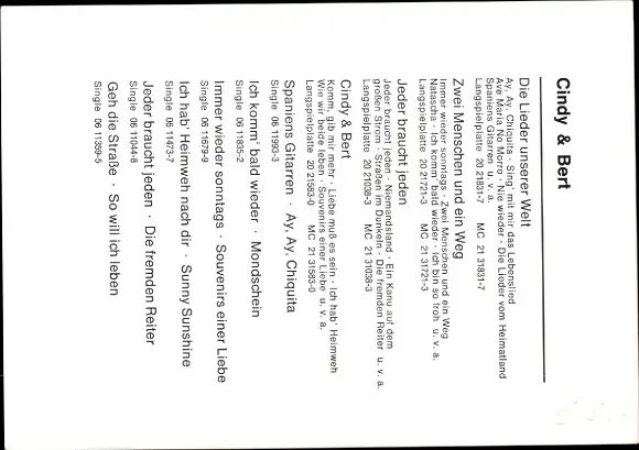 Ak Sängerduo Cindy & Bert, Portrait, Autogramme
