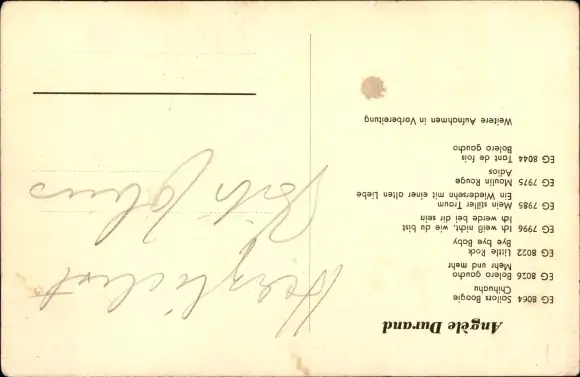 Ak Sängerin Angèle Durand, Portrait, Autogramm