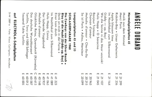 Ak Sängerin Angèle Durand, Portrait, Autogramm