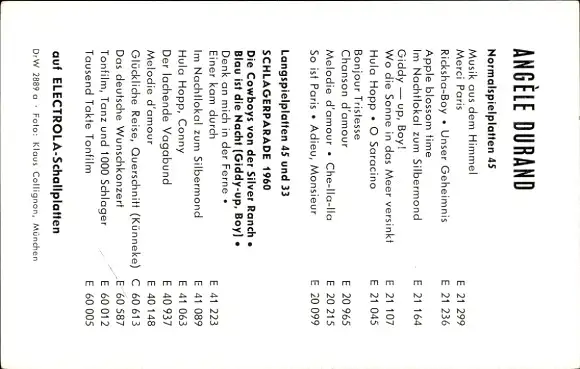 Ak Sängerin Angèle Durand, Portrait, Autogramm