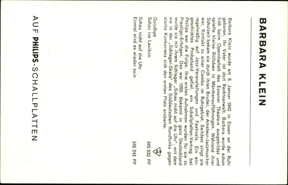 Ak Sängerin Barbara Klein, Portrait, Autogramm