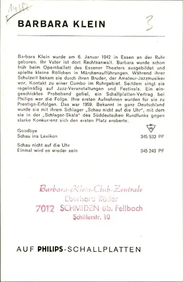 Ak Sängerin Barbara Klein, Portrait, Autogramm