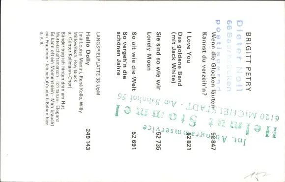 Ak Sängerin Brigitt Petry, So alt wie die Welt, Autogramm