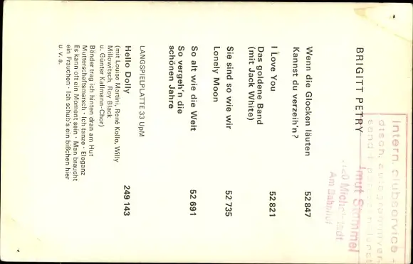 Ak Sängerin Brigitt Petry, So alt wie die Welt, Autogramm