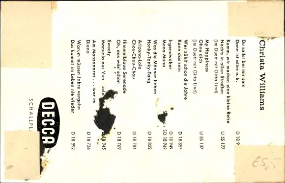 Ak Sängerin Christa Williams, Portrait, Decca Schallplatten, Autogramm