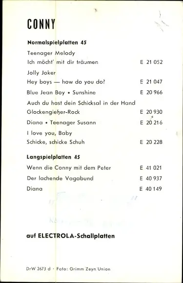 Ak Sängerin Conny, Electrola Schallplatten, Portrait, Autogramm