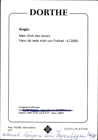 Ak Sängerin Dorthe, Portrait, Autogramm