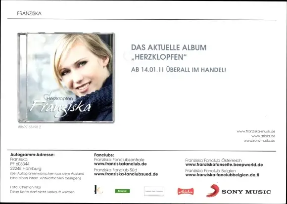 Ak Sängerin Franziska, Portrait, Album Herzklopfen, Autogramm