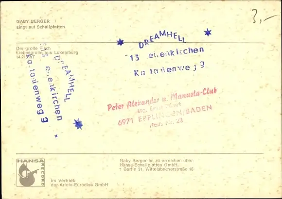 Ak Sängerin Gaby Berger, Portrait, Autogramm