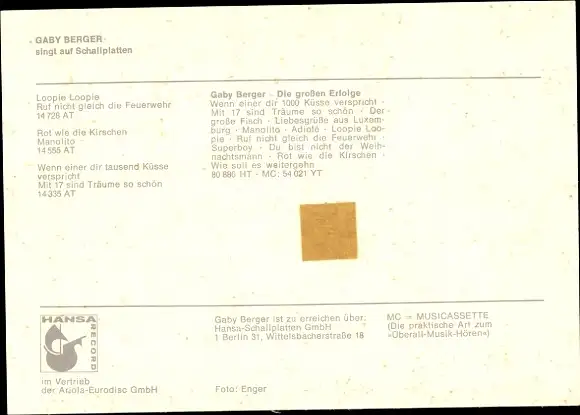Ak Sängerin Gaby Berger, Portrait, Autogramm