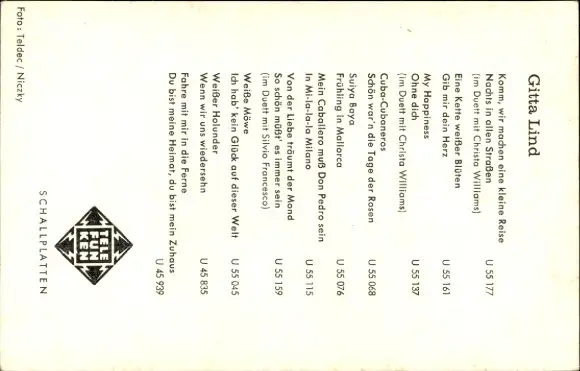 Ak Sängerin Gitta Lind, Portrait, Autogramm