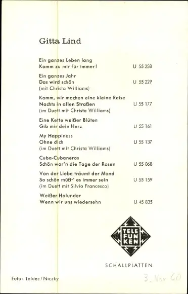 Ak Sängerin Gitta Lind, Portrait, Autogramm