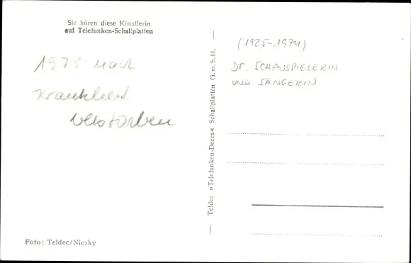 Ak Sängerin Gitta Lind, Portrait, Telefunken Schallplatten, Autogramm