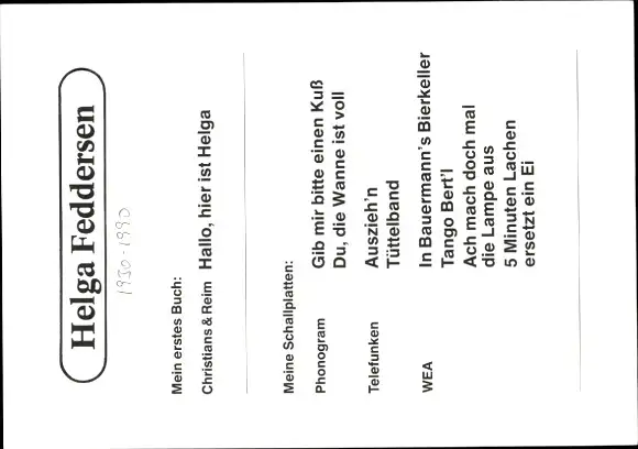 Ak Sängerin Helga Feddersen, Portrait, Autogramm