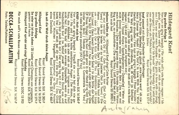 Ak Sängerin Hildegard Knef, Portrait, Autogramm, Decca