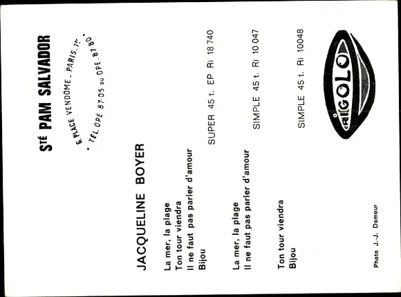 Ak Sängerin Jacqueline Boyer, Portrait, Autogramm