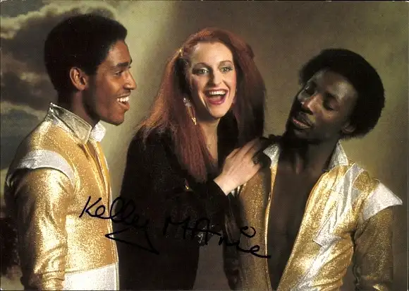Ak Sängerin Kelly Marie, Gruppenportrait, Autogramm