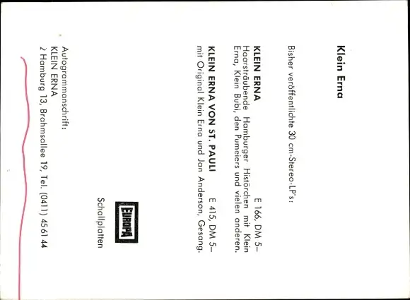 Ak Sängerin Klein Erna, Portrait, Autogramm