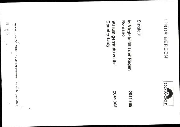 Ak Sängerin Linda Bergen, Portrait, Autogramm