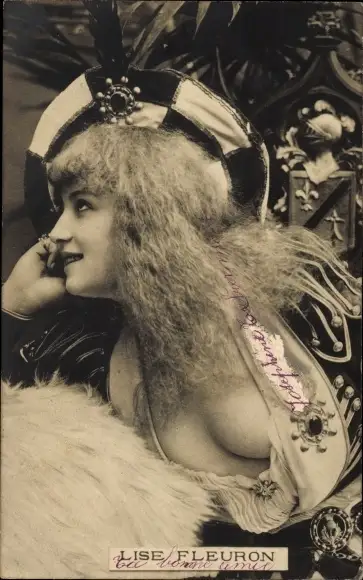 Ak Sängerin Lise Fleuron, Portrait mit tiefem Dekollete, Busen