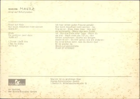 Ak Sängerin Marion Maerz, Portrait, Autogramm, Kette