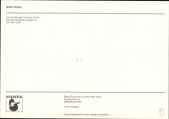 Ak Sängerin Mary Roos, Portrait, Autogramm