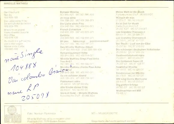 Ak Sängerin Mireille Mathieu, Portrait, Autogramm