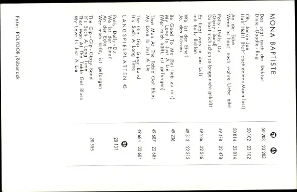 Ak Sängerin Mona Baptitste, Portrait, Polydor-Schallplatten, Autogramm