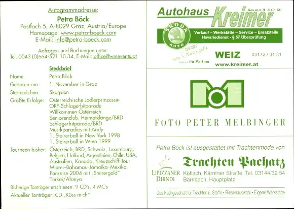 Ak Sängerin Petra Böck, Portrait, Autogramm
