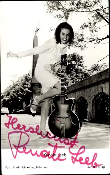 Ak Sängerin Renate Leeb, Portrait mit Gitarre, Autogramm, Rüdel Verlag