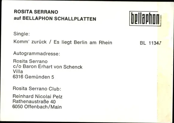 Ak Sängerin Rosita Serrano, Portrait, Autogramm, Gitarre, Bellaphon-Schallplatten