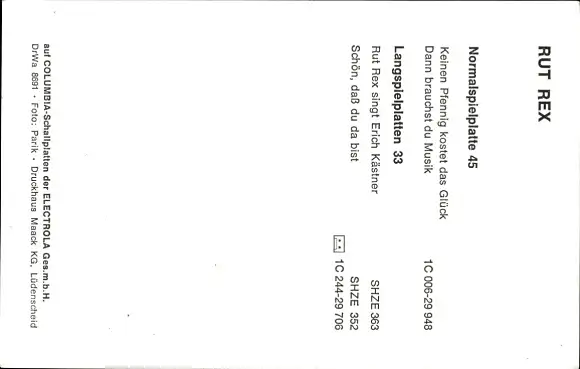 Ak Sängerin Rut Rex, Portrait, Autogramm