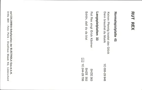 Ak Sängerin Rut Rex, Portrait, Autogramm