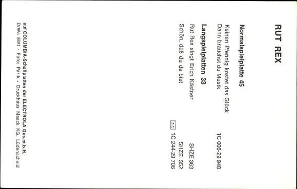 Ak Sängerin Rut Rex, Portrait, Autogramm
