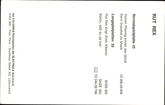 Ak Sängerin Rut Rex, Portrait, Autogramm