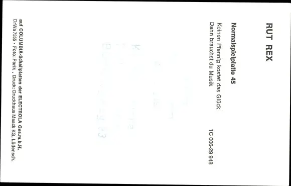 Ak Sängerin Rut Rex, Portrait, Autogramm, Columbia Schallplatten