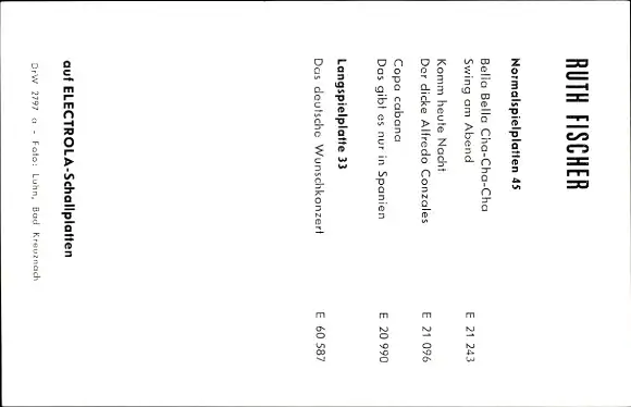 Ak Sängerin Ruth Fischer, Portrait, Autogramm