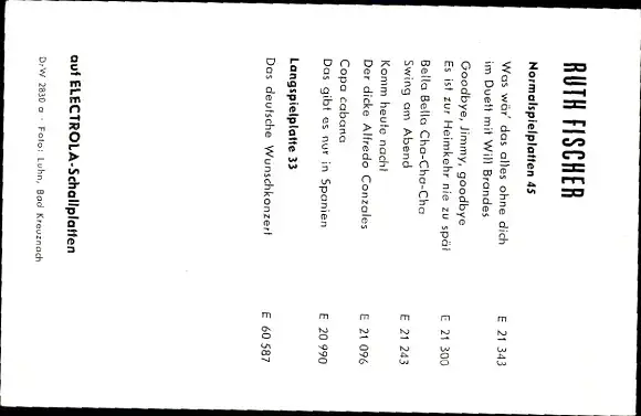 Ak Sängerin Ruth Fischer, Portrait, Autogramm