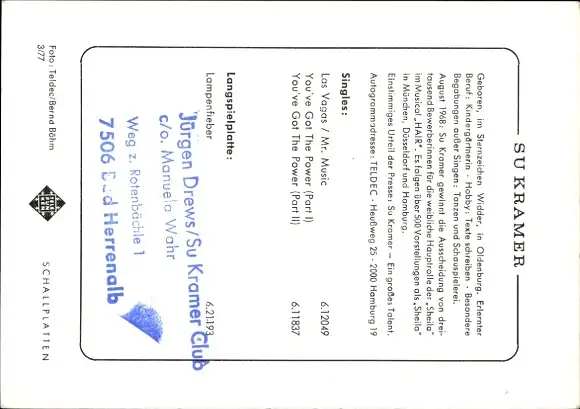 Ak Sängerin Su Kramer, Portrait, Autogramm