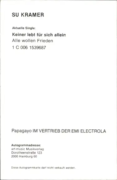 Ak Sängerin Su Kramer, Portrait, Autogramm