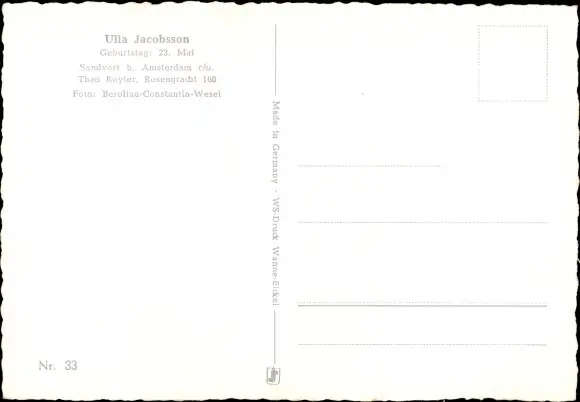 Ak Sängerin Ulla Jacobson, Portrait